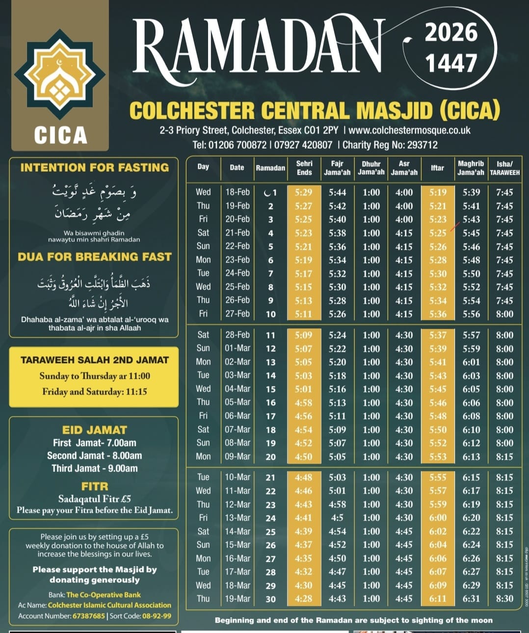 Ramadan 1447 Timetable